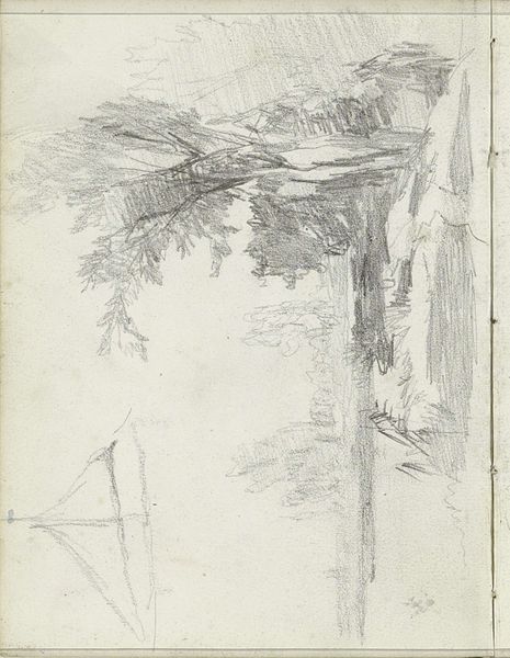 Editor: Here we have "The Garden Gate" by Hubert Robert, dating back to sometime between 1760 and 1765. It's a pen drawing in reddish-brown ink on paper, evoking a somewhat wistful feeling for me... like a forgotten corner of a grand estate. What do you see in this piece? Curator: Oh, "The Garden Gate"! It whispers of secret rendezvous, doesn’t it? I'm drawn to the almost dreamlike quality of it. Robert wasn't just documenting a scene; he was crafting a mood. Look at how the soft washes of ink suggest the hazy light filtering through the trees, enveloping the scene in an air of mystery. Makes you wonder, who is that woman, and what's she thinking as she walks away from the gate? Is it an escape, a meeting...or a goodbye? Editor: It's the "reddish-brown" ink that makes it so atmospheric, right? Like sepia photographs; gives it a sense of aged beauty and elegance... Curator: Absolutely. And see how the loose, gestural lines give the impression of movement, of life even within the stillness of the scene. I also wonder about that gate, it doesn’t really look sturdy enough for its presumed purpose, and that makes me wonder about function. Do you notice how Robert uses those sketchy lines to describe the architecture and then contrasts them with more detail to hint at nature reclaiming the built structures? Editor: Yeah, and the whole landscape is kind of melting into one another... a blend of reality and romantic fantasy. Curator: Precisely. Hubert Robert was notorious for that sort of…imagination. He paints the end of empires with that skill. Editor: So, it is not about reality; it is more about emotion! Thank you, it has opened my eyes a lot! Curator: My pleasure. I think it reminds us that even in ruins, there's still beauty to be found, right?