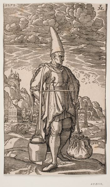 Editor: This is Frederick Bloemaert's engraving of "Heilige Jubinus van Ascalon," dating from after 1636, currently held at the Rijksmuseum. It’s rendered with such delicate lines, yet it has this monumental, almost imposing quality. I’m curious, what significance do you see in its iconography? Curator: This work truly encapsulates the power of visual symbolism. Jubinus, shown in episcopal garb, embodies spiritual authority. Notice how his gaze is directed downwards towards the book; it’s not merely an act of reading, but a visual metaphor. What might that downcast gaze suggest to you about knowledge and authority? Editor: Maybe humility? A learnedness that comes from dedicated study, rather than just inherent power? Curator: Precisely! The book itself, held open, can be interpreted as divine text revealed but it is deliberately displayed and almost hidden from our complete understanding. It’s less about direct instruction and more about inspiring reflection. The setting – within the rocky, cavernous landscape - underscores Jubinus’s separation from the mundane world, literally elevating him towards spiritual enlightenment, or perhaps hiding and sheltering his actions? What thoughts does this pose? Editor: It feels very considered, placing him away from everyday life. But it looks more like a dangerous and unprotected surrounding than a temple or a comforting scenery. So the rock setting adds another layer, it might reference strength but at the same time is imposing threat. Curator: Indeed. Think about the tradition of depicting holy figures in settings that evoke both vulnerability and divine protection. Bloemaert uses these established visual cues to deepen our understanding of Jubinus’s character and the complex relationship between earthly and spiritual realms. What stays with you after this dialogue? Editor: It really hits home how symbols can speak volumes, echoing cultural memory and layering meaning. It really inspires me to consider them actively.