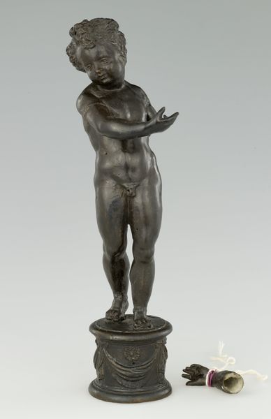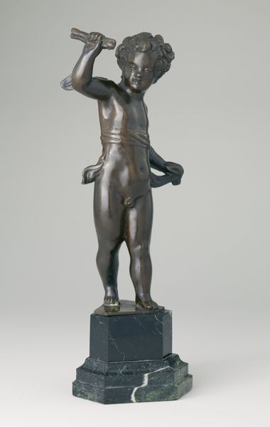 Curator: What stands out to you about Girolamo Campagna's bronze sculpture, "Juno with Peacock," from the 16th century? Editor: It's the smoothness of the bronze that I initially notice. Juno appears so elegant and self-assured next to her peacock companion. What aspects of the sculpture particularly resonate with you? Curator: The choice of bronze is key. Bronze allowed for multiples; it facilitated wider circulation of the image and its associated ideology to elites during the Renaissance. Where was it produced, do you think, and for what consumption? How does its form enable certain ways of valuing materials and labour? Editor: The detail in the casting and chasing of the feathers of the peacock are incredibly crafted, implying Venetian Republic origin due to the presence of bronze workshops. How would you say that the production impacts its meaning? Curator: Precisely! Venice had the workshops and the markets. The goddess’s calm demeanour combined with the preciousness of the bronze speak to an appreciation of the social hierarchy. The sculpture itself, as an object, performs social work for its patron by affirming luxury, learning, and classical myth. Where might such a sculpture been displayed in 16th century Venice? Editor: Probably within an aristocratic residence... perhaps even outdoors! Thanks to our chat, now when I see this piece, I don't only consider the art, but the historical conditions and cultural environment that shaped the materiality and production of the piece! Curator: Indeed, that bronze cast has so much to reveal! Examining the materials and means of its creation opens new avenues for understanding its purpose and influence on the society.