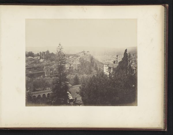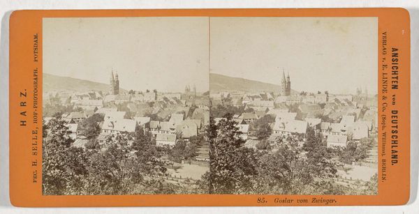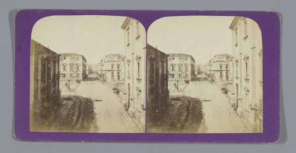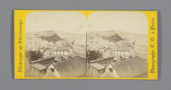This is Johann Friedrich Stiehm’s stereoscopic photograph "Gezicht op de burcht van Neurenberg." The composition is arranged in a way that emphasizes layers of space. Note how the bridge in the foreground leads the eye towards the buildings. The castle, situated on elevated ground, appears to float ethereally. Stiehm captured the scene with a soft focus which adds to the romantic feel. What we are seeing here is the interplay between reality and representation that was common to the photographic medium in the nineteenth century. By using a stereoscopic technique, Stiehm engages with the idea of perceived depth, creating an almost tangible experience for the viewer. This invites us to consider the cultural significance of the site, as well as the emotional and perceptual experience.