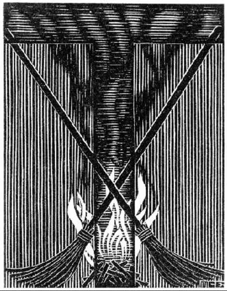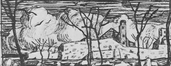 Editor: Here we have "Bokskap" by Theodor Severin Kittelsen, a woodcut depicting a log cabin and figure in a landscape. I’m immediately struck by the contrast between the rough texture of the wood and the softer lines of the figure. What’s your interpretation of this piece, seen through a historical lens? Curator: Well, first consider the cultural context in which Kittelsen was working. Late 19th century Norway experienced a surge in national romanticism, a movement emphasizing folk art and traditions. Editor: Ah, yes, the focus on celebrating peasant life. Curator: Exactly! How does the piece reflect that ideal, do you think? Editor: The log cabin itself speaks to that... It's not grand or ornate. Just simple, maybe even idealized. Curator: And what about the lone figure outside? Look at the figure, almost bowed down and definitely blending in to the background of the work. The way she hunches and is positioned partially out of view reminds me that during this time the population of Norway struggled with their own feelings of national identity and place in Europe. Also, think about where something like this would be displayed. Editor: Okay, like… not necessarily a grand salon? More likely a public space, reinforcing this vision for ordinary folk? Curator: Precisely! Art like this helps shape our understanding of national identity. Now that you notice the blend from the character into the background, do you have new feelings or perspective? Editor: Totally, at first I was struck with this "home sweet home" kind of thought. I now find myself sympathizing with the person. Thanks, that’s given me a lot to consider regarding the cultural message being portrayed. Curator: My pleasure! I think examining these images closely lets us reflect on not only history, but where we’ve come since.