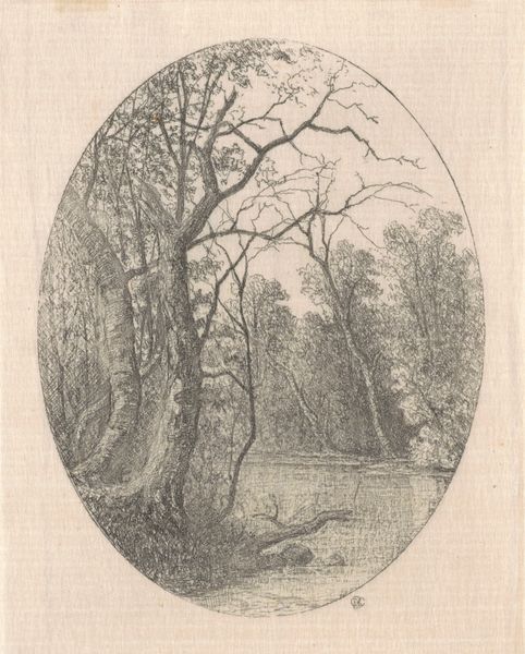 Editor: So, here we have Antonio Fontanesi's etching, "Fisherman on the Lakeshore," created around 1864. It's incredibly atmospheric, almost hazy, with that lone figure of the fisherman adding a touch of melancholy. What strikes you about this piece? Curator: It’s fascinating to consider Fontanesi’s work in relation to the broader political landscape of Italy at that time. Think about the Risorgimento – the unification movement. How do you think depictions of the land, of labor, like this fisherman, played into the developing sense of national identity? Editor: That’s an interesting perspective! I hadn't thought about it in terms of nation-building. It feels so personal and quiet. It’s a very solitary activity depicted. Was Fontanesi attempting to convey political themes or just represent a realistic depiction of life? Curator: It's both, I suspect. Landscape painting, especially during Romanticism and Realism, became a way of idealizing, even mythologizing, the nation's territory. Images like these entered public consciousness and contributed to cultural and social narratives around work, country, and self. Now, consider where and how these prints were distributed – did they reinforce or challenge existing social hierarchies? Editor: I suppose that depends on who had access to them. If they were primarily viewed by the upper classes, maybe it romanticized rural life without necessarily critiquing social structures. I’ll have to do more research on the distribution networks for prints during that period. I’m also wondering how his training impacted the style and subject matter. Curator: Exactly! Understanding who had access to and controlled the image shapes not only its reception but also its political impact. Editor: Well, I've definitely learned to look at landscapes with a new perspective, thinking about them not just as pretty scenes but as active participants in cultural dialogue. Thanks for expanding my viewpoint! Curator: My pleasure! Thinking about the context can really illuminate the subtle ways art engages with society and shapes how we see the world.