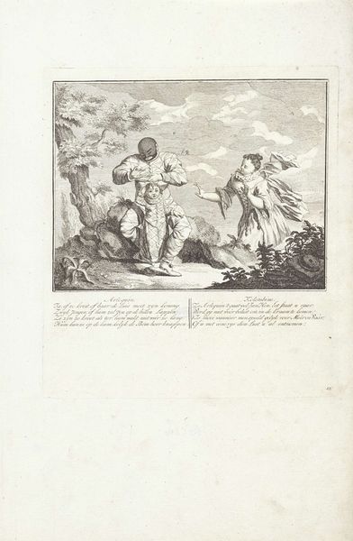 This anonymous print presents Arlequin Gives His Child the Breast. It probably dates from the 18th century, judging from the style of the engraving and the costumes depicted. We see Harlequin, a stock character from the Commedia dell'arte, nursing a baby, while another character, possibly a doctor, looks on. The Commedia dell'arte was a popular form of improvisational theater that originated in Italy and spread throughout Europe. Its troupes were known for their use of masks, stock characters, and physical comedy. As a form of popular entertainment, Commedia reflected and refracted the social norms of its time, but could also subvert those same norms through satire and parody. Here the artist is commenting on social norms through role reversal, by representing Harlequin as a nursing mother. To understand this work more deeply, we'd want to know where and for whom it was made. Research into the history of Commedia dell'arte in different regions, its changing relationship to state power and the moral concerns of the church might shed light on its meaning.