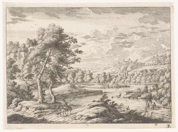 This etching, "Landscape with Family," was crafted by Nicolas Cochin in the 17th century. At first glance, we see a tranquil scene, but let’s delve deeper into its symbolic language. The trees, framing the family, remind us of the ‘arbor vitae,’ the tree of life, a symbol stretching back to ancient mythologies. Like the family, it embodies growth, connection, and the nurturing embrace of nature. Consider, too, the humble abode, a recurring motif representing shelter, security, and the human connection to the earth. Now, think of similar images across time – the family gathered under a sheltering tree appears in countless forms, from medieval tapestries to Renaissance paintings. Each iteration carries echoes of earlier representations, yet reflects its own era. The family unit, centered in the composition, triggers within us a powerful, primal recognition of our own origins. It is a symbol that resonates with subconscious memories, an idyllic scene charged with emotion. It echoes through time.