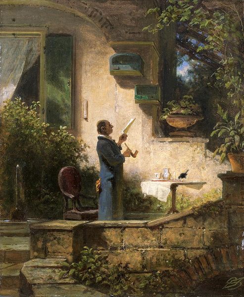 Carl Spitzweg, a German artist, painted "Suspicious Smoke" using oil on canvas sometime in the mid-19th century. It depicts a monk on a verdant terrace, gazing through a telescope at a distant fire. Though Spitzweg is known for his humorous and often sentimental genre paintings, this one offers a glimpse into the socio-political anxieties of the Biedermeier period. The painting may reflect the era’s heightened surveillance and censorship, in which citizens were encouraged to be vigilant against any sign of social unrest. The monk, a figure traditionally associated with introspection and piety, is instead engaged in an act of watching, possibly even suspicion. Is he protecting the established order or merely curious? The ambiguity invites us to consider how institutions – like the church – can be complicit in systems of control. To understand Spitzweg fully, we need to look at the social history of 19th-century Germany. Only then can we appreciate the depth and complexity of this apparently simple scene.