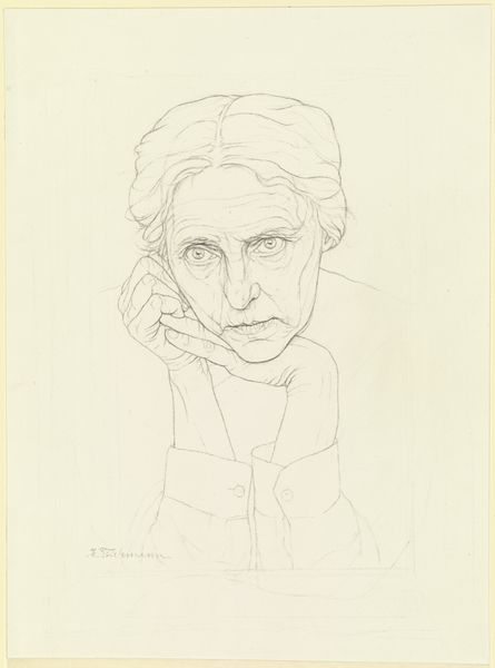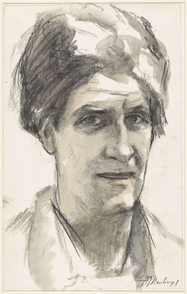 Editor: Here we have Alfred Stieglitz's "Georgia O'Keeffe," a gelatin silver print from 1929. The low-key lighting gives it such an intimate feel. What catches your eye in this piece? Curator: I’m struck by the balance achieved through contrasting textures and tones. Note the sharp, almost clinical precision in the focus on her face, contrasted with the velvety blacks enveloping her form. The modulation from light to shadow constructs a compelling rhythm. Editor: Yes, the way the light models her face is so sculptural! Curator: Precisely! And the lack of adornment redirects our attention solely to the geometry of her face: the arc of her brow mirroring the curve of her cheek, the triangle formed by her nose and mouth. Each element works in concert, almost musically. What do you make of the composition itself? Editor: The close-up, almost cropped, framing seems intentional. There's this immediacy, a sense of being drawn into her personal space. Curator: Indeed. The truncation compels the viewer to engage in a more concentrated reading of form, of light and shadow. It's an almost aggressive act of simplification. Editor: It really forces you to look closely at the pure shapes and contrasts. Curator: Ultimately, the formal elements of this photograph succeed in capturing not only O’Keeffe’s likeness, but also a profound essence distilled through light and form. It's modernism at its finest. Editor: It’s amazing how much can be communicated just through form and light. Curator: Precisely, and it offers a renewed appreciation for what the artist wants to say, without considering other factors. Thank you.