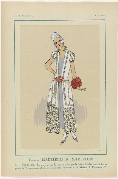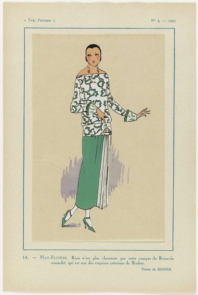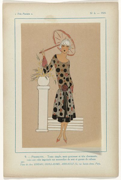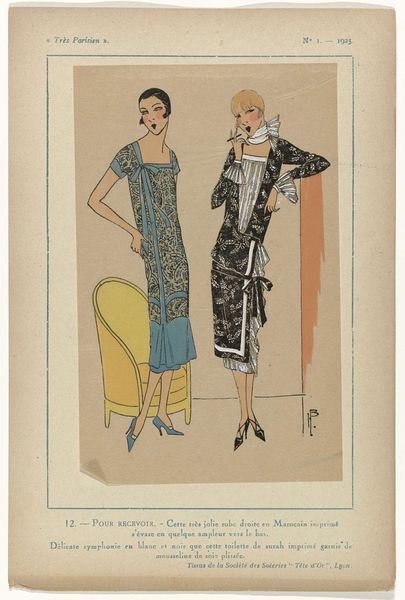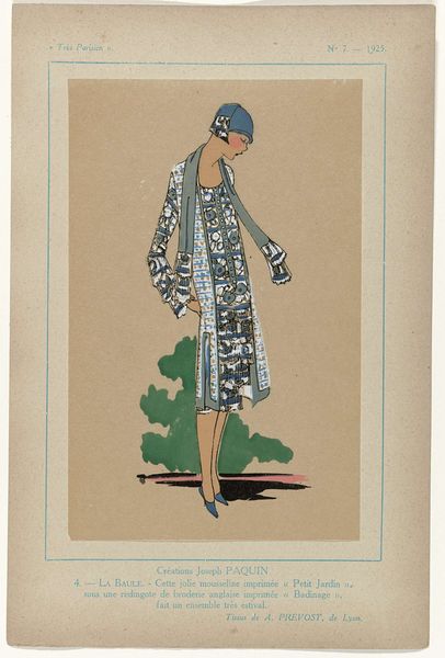 This fashion plate, "Très Parisien, 1925," by G-P. Joumard, is an object of its time. It’s all about capturing a moment, right? The quick gesture of the brush, the spontaneity of the line. It’s like the artist is saying, "Here's how we see things now," with a confident, casual stroke. Look at the way the colors wash over the surface, thin and transparent. The texture of the paper almost fights back against the image itself, resisting the illusion. See how the patterns on the coat and dress are not quite filled in, the white of the page shining through, like a sketch that’s not quite finished. It’s in these imperfections that the piece comes alive for me. There’s something about the overall composition that reminds me of Erté, the Russian-born French artist. Both artists share a similar approach to illustration, focusing on the decorative and stylized depiction of fashion and design. You get the feeling that art is this big, ongoing conversation, always borrowing, always riffing. And that’s a beautiful thing.