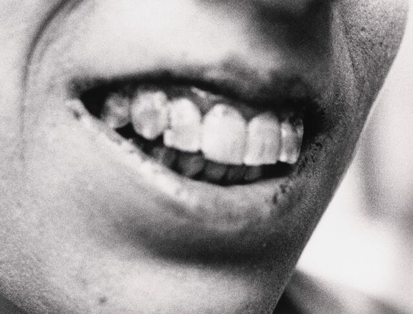 Here is an untitled gelatin silver print made by Myra Greene. Greene's work often delves into how the photographic medium has historically shaped perceptions of identity, particularly race. This close-up shot of a mouth confronts viewers with an intimate, yet distanced, view of blackness. By focusing on a partial view of the body, Greene challenges the history of portraiture, which has often objectified and stereotyped Black individuals. The stark contrast of the print emphasizes the features, prompting reflection on visibility, representation, and the gaze. Greene’s work invites us to consider how personal experiences are intricately linked to broader socio-political contexts. What does it mean to see or be seen, and how does our perception affect identity?