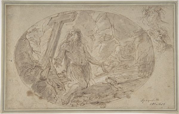 Gaspare Diziani rendered this sketch of Christ in the Garden of Gethsemane with pen and watercolor. We see Christ kneeling in anguish, an angel offering him solace, and looming above, a cross. The cross, initially a symbol of utter humiliation and death, undergoes a profound transformation. Its presence here signifies not just impending doom but also the promise of redemption and resurrection. We see this echoed in earlier depictions of sacrificial symbols across cultures, from ancient Roman depictions of the crucifixion to the Germanic pagan symbol of the Irminsul, a sacred tree or pillar destroyed by Charlemagne that some scholars believe was totemic and took the form of a cross. The anguish etched on Christ’s face speaks to a universal human experience: confronting mortality. Diziani captures this moment of intense emotional and psychological struggle with the bold strokes of the angel and the cross. It remains a powerful image that engages our collective memory, reminding us of the cyclical nature of suffering, sacrifice, and renewal.