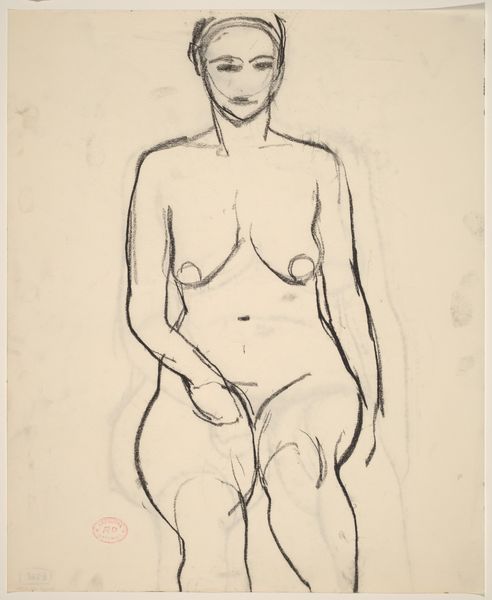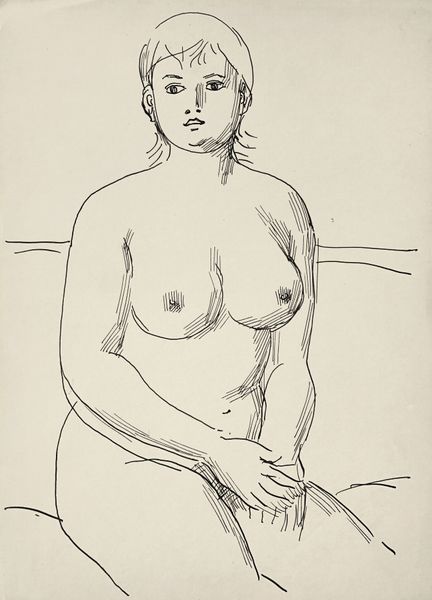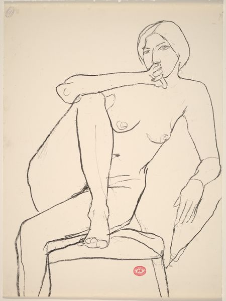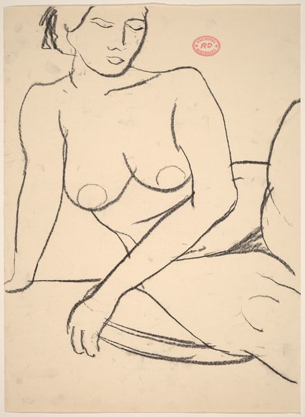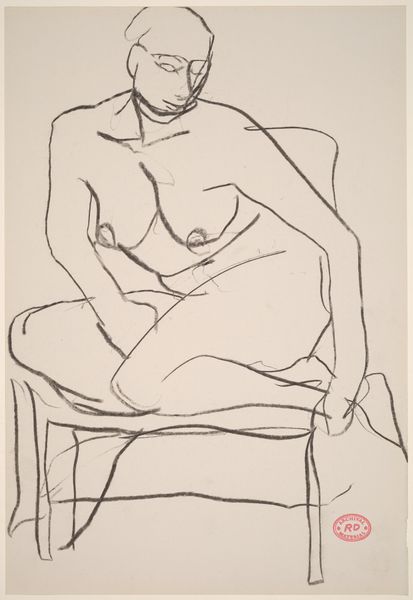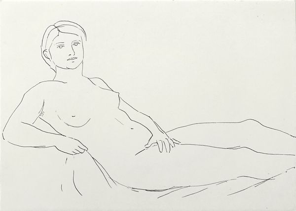 Editor: This is Henri Matisse's "Nu assis les bras étendu," created in 1925 using pencil. It's a simple, elegant sketch. What strikes me is the economy of line; how much he suggests with so little. How do you read this piece? Curator: I see this drawing as an artifact of artistic labour, highlighting the interplay between material and process. The graphite on paper is less about depicting the female form and more about exploring the *act* of drawing. Note how the tentative, almost searching lines reveal the artist's hand – a very physical and deliberate hand. Consider the paper itself. What kind is it? Its texture would dictate how the pencil moved. Was it a cheap newsprint or a higher-quality stock, something meant to last? Editor: That’s interesting. I hadn't thought about the paper as a material in itself. So, you're focusing less on the final image and more on the... making of the image? Curator: Precisely. Where was this drawing created, and for what audience? Was it a study for a larger work? Or a work unto itself? The context informs our understanding of its materiality. We often forget the socio-economic factors intertwined with artistic production, and that can profoundly affect art. It is about more than lines; it is a dance between labor, materials and artist. Editor: I see what you mean. Thinking about the kind of paper, the availability of pencils at the time, even Matisse’s own economic situation, it all adds another layer. Thank you, that was very helpful. Curator: Indeed, considering the art within these factors opens avenues of insight beyond the merely visual.
