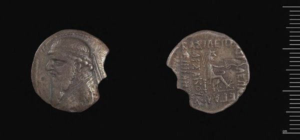 Editor: We're looking at a Hexagram of Herakleios, made by Abd-al-Malik. It's a small, silver coin, but the imagery is striking. What catches your eye about its formal qualities? Curator: The bilateral symmetry on each face of the coin offers a compelling study in duality. Note the mirroring in the figures on one side, contrasted by the structured uniformity of the cross motif on the other. Editor: So, the formal structure creates a dialogue between the figures and the cross? Curator: Precisely. The material limitations inherent in striking a coin have guided the artist to create an impactful and economic composition. The formal relationship is key to its success. I noticed this and that, what did you notice? Editor: I see what you mean now; the restrictions emphasize the power of the design. Curator: Indeed. The form speaks volumes, even across centuries.