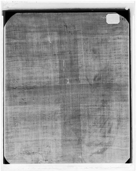 Curator: At the Harvard Art Museums, we have an X-radiograph of "Portrait of an Old Woman," originally painted by Hans Memling. Editor: It's fascinating! The radiographic view reveals an almost abstract grid, stark and geometric beneath the surface image. Curator: This technique allows us to see the support structure—the wood panel—and any underlying paint layers or repairs. It speaks to the physical construction of the artwork, its materiality, and the labor involved in its creation. Editor: Indeed, the stark contrast highlights the internal architecture, transforming a portrait into a study of form and construction. It offers a completely new way to experience the artwork. Curator: Seeing the process, the hidden supports, changes the way we consider the finished product, and the means of production. Editor: Absolutely, it encourages a deeper appreciation of the artist's choices, and the artwork’s enduring structure.