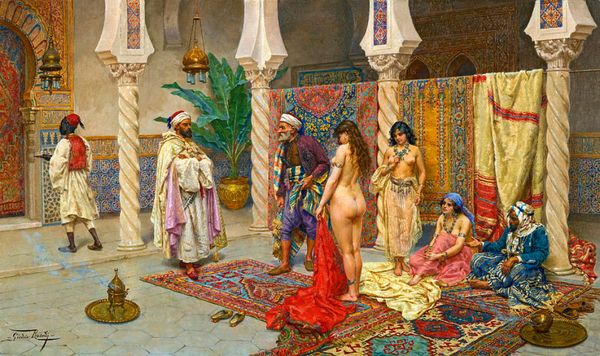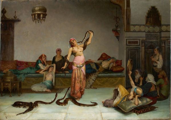 Giulio Rosati painted this oil painting, titled 'The Harem Dance', some time in the late 19th or early 20th century. In it we see dancing women, musicians, and richly decorated architecture, all designed to evoke an image of the 'Orient'. Rosati was one of many European artists who made paintings of North Africa and the Middle East, a style now known as Orientalism. Orientalist painters often had never visited the places they depicted, and instead relied on other paintings, photographs, and travellers' tales for their source material. These artworks spoke more to European fantasies and colonial desires than they did to actual Eastern cultures. The Harem Dance depicts an imagined scene of leisure and pleasure, with the dancer and musicians seemingly performing for their own enjoyment. But what does it mean to depict a culture this way? How might social, economic, and political power dynamics shape cultural representation? These are questions that art historians try to answer by diving deep into historical documents and visual materials.