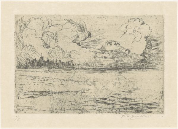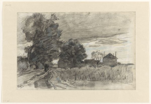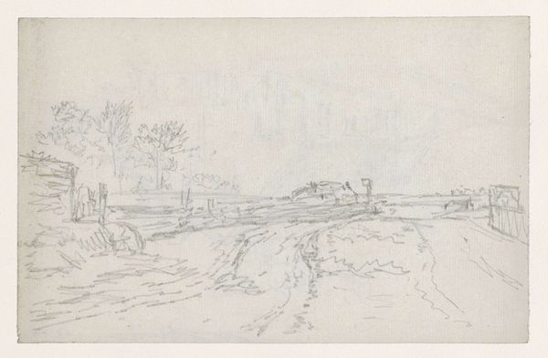 Théophile de Bock made this sketch titled, "Landschap bij Nijmegen," or "Landscape near Nijmegen," with pencil on paper. Though undated, we know de Bock was active as an artist in the Netherlands in the late 19th century. De Bock was a member of the Hague School, a group of artists known for their realistic depictions of the Dutch landscape, often focusing on scenes of rural life and the working class. The Hague School artists were reacting against the academic style of painting that was popular at the time, which they felt was too artificial and detached from reality. Instead, they sought to capture the everyday experiences of ordinary people. Here, de Bock's choice of subject matter and style aligns with the Hague School's interest in portraying the authentic beauty of the Dutch countryside. As historians, we consult archives, exhibition catalogs, and period writings to better understand the artistic movements of the time and their relationship to broader cultural and social contexts.