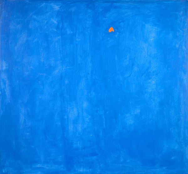 Curator: This is Clyfford Still's "1953," housed right here at the Tate. Look at its commanding size: nearly eight feet tall! Editor: That cobalt blue is startling, like a night sky rent asunder. The jagged yellow, black, and red intrusions feel violent, primal. Curator: Still embraced abstract expressionism, emphasizing personal expression through bold color and texture. He rejected traditional representation, aiming for a more direct, emotional experience. Editor: I see a struggle enacted on the canvas. The blue, so vast, is attacked, torn apart by these other forces. A yearning for totality disrupted? Curator: Perhaps. Still's work often explores themes of isolation and the individual's struggle against societal forces, rendered here through the push and pull of color and form. Editor: It's unsettling, deeply so. The painting’s power lies in that unresolved tension, that perpetual state of becoming. Curator: Yes, it leaves us with a feeling, an echo of the artist's own turbulent inner landscape.
