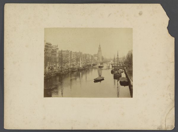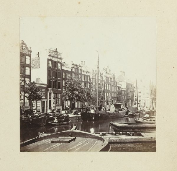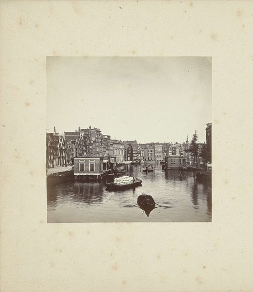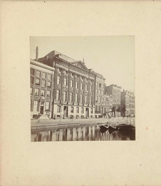 This photograph depicts the Nederlandsche Bank on the Oude Turfmarkt in Amsterdam. Though the photographer is anonymous, this image encapsulates the burgeoning era of institutional photography. Dating from the 19th century, this photograph presents a formal, almost bureaucratic, view of the Dutch central bank. The imposing architecture of the bank, with its symmetrical design and orderly fenestration, reflects the values of stability and control that financial institutions sought to project. The surrounding canal and cityscape provide a context, embedding the bank within the economic and social fabric of Amsterdam. The Nederlandsche Bank was, and remains, central to the Dutch economy and it presents how financial power is visualized through architecture. Understanding this image requires delving into the history of banking, architectural studies, and photographic practices. Further research in archives might reveal who commissioned the image and how it was used. This photograph serves as a reminder that art, even in its most documentary forms, is a product of social and institutional forces.