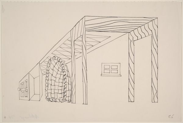 Richard Artschwager made this drawing, titled "Basket, Table, Door, Window, Mirror, Rug #39," with graphite on paper. It's interesting how he uses simple lines to create a kind of inventory of domestic objects. The thing that grabs me here is the off-kilter perspective. Everything's a little skewed, a little wobbly, like a memory of a room rather than a faithful depiction. Look at the door on the right – it’s not quite square, and its relationship to the wall behind is all wonky. This play with perspective reminds me a bit of Giorgio de Chirico's surreal cityscapes, where space feels dreamlike and unsettling. What Artschwager does so well is to take these ordinary objects and make them strange, forcing us to look at them in a new way. The title itself is like a list, a collection of nouns that only hint at a bigger picture. I'm left wondering, what's the relationship between these things? What kind of space are they inhabiting? It’s this ambiguity that makes the drawing so compelling.