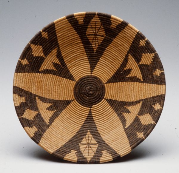 This basket was woven by an Indé (Apache) artist, presenting a rich array of symbolic motifs. Dominating the design are human figures, crosses, and geometric patterns, each carrying profound significance within Apache culture. The human figures may represent ancestors or spirits, embodying a connection to the past and the spiritual realm. Consider the cross, a symbol that transcends cultures. While often associated with Christianity, its roots extend far deeper, appearing in ancient civilizations to represent the four cardinal directions or the intersection of the earthly and divine. The cross appears as a symbol across time, from ancient Egyptian art to Mesoamerican cultures, each time shifting in meaning. Such recurring motifs speak to a collective memory, a subconscious recognition of symbols that have resonated throughout human history. This design has a powerful emotional and psychological weight, engaging viewers on a deep, subconscious level, evoking a sense of connection to ancestral traditions. The spiral lines may represent cyclical patterns, linking the past with the future. This symbol has resurfaced, evolved, and taken on new meanings in different historical contexts.