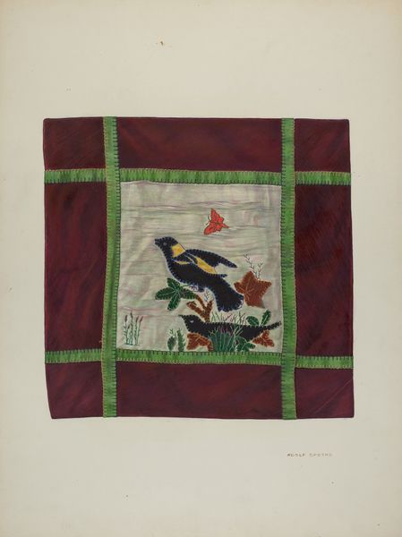 This is a Beaded Purse, likely created around the early 20th century by Cornelius Christoffels. Here, the eye is immediately drawn to the image of a bird among floral motifs, symbols steeped in cultural meaning. Birds often symbolize the soul's journey or spiritual aspiration. These avian figures remind us of the ancient Egyptian Ba, a bird representing the soul's ability to move between the earthly and divine realms. The surrounding flora may allude to nature's beauty and fragility. Across cultures, the image of the bird feeding resonates deeply, symbolizing nurture, provision, and the delicate balance of life. Consider how these motifs echo through history, appearing in medieval tapestries and Renaissance paintings, each time imbued with new cultural significance. The enduring presence of such symbols speaks to the collective memory and the unconscious threads that bind us across time, engaging viewers on a deep psychological level. The symbolism progresses non-linearly, resurfacing, evolving, and taking on new meanings in different contexts.