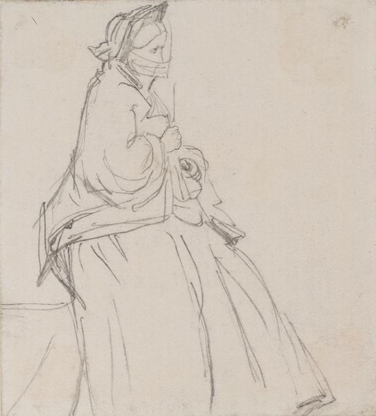 Curator: This is Joseph Highmore's "Sketch of a Girl," currently held in the Tate Collections. Highmore was active in the first half of the 18th century. Editor: It feels so fleeting, like capturing a whisper. The delicate lines give her an ethereal, almost dreamlike quality. Curator: Well, sketches like these served a crucial role in the artistic process. Highmore, trained as a lawyer, came to art a little later in life. He needed studies like this. Editor: You can almost feel the artist circling, searching for the right contour. It makes the final image feel so much more alive. Curator: Absolutely, and it also reveals much about the social conventions of the time. Highmore painted members of the burgeoning middle class. Editor: I love how the sketch invites you in, it leaves space for your own imagination. Curator: Indeed, these intimate glimpses into the past can be remarkably illuminating. Editor: It makes me wonder what she was thinking, caught in this little moment.