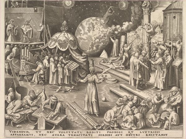 This is ‘The Wheel of Life’ a 16th-century engraving with striking color washes by the artist known only as Monogrammist AI. Dominating the composition is a large wheel, rendered with detailed precision, divided into segments representing stages of life. Figures are placed along its circumference—childhood, youth, adulthood, old age. Each is meticulously drawn, with attention to costume and posture, capturing the transience of human existence. Above, the artist juxtaposes earthly existence with the divine. Christ in the upper register is balanced by the figure of Death at the center. These elements, combined with the symbolic wheel, reflect a structural duality between the temporal and the eternal. Note how the artist uses strong contrasts—the vibrancy of life against the starkness of death—to underscore the fleeting nature of human life. This dynamic arrangement invites reflection on our place within the grand, cyclical structure of existence. 'The Wheel of Life’ serves not only as a moral reminder, but also as a profound exploration of the human condition.