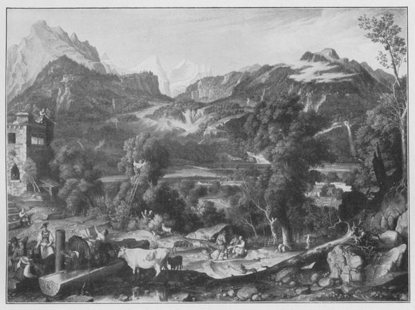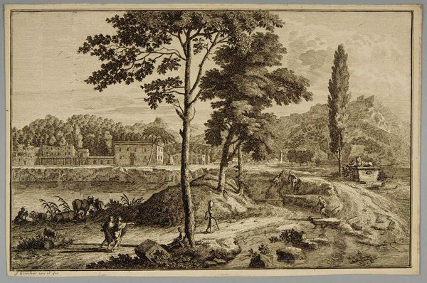 Curator: The dramatic intensity of this print, one of Giovanni Battista Piranesi's "Vedute di Roma", or "Views of Rome," is undeniable. The scale seems enormous. Editor: Yes, that's immediately what strikes me—the contrast between the small figures and the overwhelming, crumbling architecture. There's a distinct power dynamic presented. Curator: Piranesi created these prints, mixing etching and engraving techniques, to showcase Roman antiquities and architectural marvels. He captured the grandeur and scale of the past. But also suggested its inevitable decay. It really cemented Rome as this iconic site of power, beauty, and ruin for centuries after. Editor: And look at the romanticized figures he's placed amongst these ruins—they are like ghosts inhabiting the skeleton of empire. This harkens to narratives that use visual imagery to normalize exploitation and the loss of marginalized histories within these grand narratives. This image evokes questions of how power is constructed, visualized, and, eventually, dismantled. Curator: Precisely! Note how Piranesi exaggerates the perspective to amplify the imposing quality of the Roman architecture. It creates an emotionally loaded sense of sublimity, perhaps referencing how we, as humans, always seek symbolic and powerful historical moments, as reminders. These ruins carry significant cultural and psychological resonance. Editor: It's unsettling, in a way, the image is a perfect representation of how structures, seemingly eternal, crumble, yet those echoes continue to ripple through power systems. Who has access to beauty? Who builds this city? Whose ruins are these really? It is a conversation starter for a society always in a constant state of flux, even in ruin. Curator: These "Views of Rome" really capture Rome’s layered existence—a city built upon its own past. It becomes a symbolic exploration of time, memory, and the impermanence of human creation. Editor: Ultimately, the artwork allows for open questioning. Are we gazing upon the noble bones of history or reckoning with the cost of building and toppling monuments of dominance?