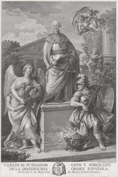 Curator: Welcome. Here we have an engraving from between 1599 and 1622, attributed to an anonymous artist. It's called "Sacrifice of a Swan," and comes from a series called "Ex Antiquis Cameorum et Gemmae Delineata," found today at the Metropolitan Museum of Art. Editor: A swan! Getting thrown into the barbeque like that! Honestly, my first thought is, this print looks utterly bleak. What did that poor swan do to deserve this? Curator: The print draws its subject matter from ancient cameos, specifically seeking to evoke classical sacrifice. It engages with the aesthetics that Italian Renaissance artists admired in the antique world. Think proportion, balance, but also... ceremony. Editor: Ceremony, yes, but there’s also a theatrical feeling to the poses, even with just lines on paper. That guy blowing on his double flute, seems like the ancient world's DJ setting a morbid mood. Look, it is quite graceful though, the figures draped in all that fabric, arranged like they’re posing for some epic drama. Curator: Well, music and ritual were deeply entwined, as you suggest. Note the altar, adorned with garlands. An attendant prepares the offering – in this case, our feathered friend. The precise identities are difficult to ascertain definitively. Editor: Makes you think though. In this picture it might as well be all about power. That bird, the most beautiful of creatures getting an ugly ending so that those folks can strut about and look important? I think the artist captures how, in some respects, we are still staging the same shows. Curator: Yes, one reading might focus on the mechanics of social hierarchy and power dynamics as seen reflected through a Renaissance lens gazing at antiquity. It points to how artistic interpretation inevitably refracts existing norms of its moment. Editor: All that line work feels so deliberate and cold. Not in a bad way, more like seeing a crime scene, very elegantly documented. But it does lend a feeling of detachment, doesn’t it? Making the brutal scene, well, more digestible perhaps? Curator: Absolutely. The calculated rendering allows for consideration, the cool precision a sort of shield. In its attempt to translate antique ideals of sacrifice, we can glean social dimensions about art making then and now. Editor: Thank you. Seeing the echoes of those times in our own... it’s spooky, beautiful and tragic, just like that poor swan.