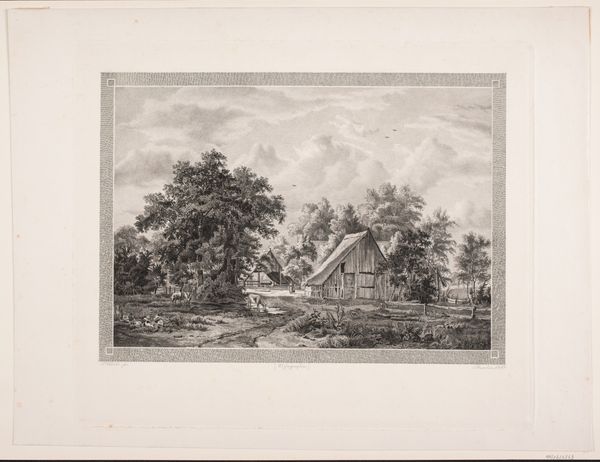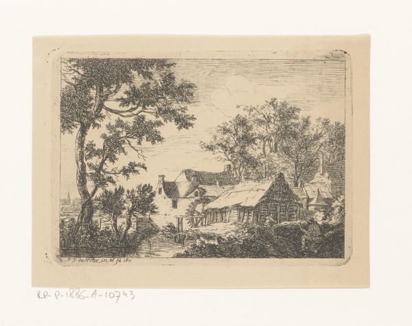 This is Peter Christian Schøler’s landscape with a farmhouse between trees. The artwork is composed of the farmhouse and trees which create a central vertical axis, around which other elements of the landscape are arranged in relatively symmetrical fashion. The light in the artwork softly illuminates the buildings, and the contrast between light and shadow gives the scene a tranquil, pastoral quality. Looking at the structure of the image, we notice how Schøler employs a visual language that references the picturesque tradition. This places emphasis on the visual appeal of the scene through the deliberate arrangement of natural elements like the trees and the buildings to create a harmonious composition. This semiotic interplay between reality and representation prompts us to consider the broader cultural values and aesthetic preferences of the time, and to investigate the image as more than just a depiction of the natural world. The formal structure of this landscape encourages a contemplation on the way we perceive and idealize the world around us, prompting a deeper understanding of the interplay between art, nature, and culture.