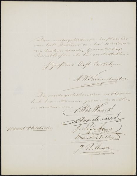 This letter to Ary Johannes Lamme was penned by Anna Louisa Geertruyda Bosboom-Toussaint, likely in the late 19th century. It’s formed from paper, ink, and the postal system, all products of burgeoning industrialization. Consider the materiality of this letter. The paper, likely machine-made, speaks to the rise of mass production. The handwriting, in contrast, offers a personal touch, a direct link to the author. Ink, once carefully mixed, was becoming a standardized product, available to all. The postal stamps are also significant. They reflect the growing efficiency of communication networks, knitting together a society increasingly connected by trade, migration and shared information. This letter embodies the tensions of its time: between hand and machine, individual expression and mass production, local community and a globalizing world. In studying an object like this, we gain insights into the lived experience of the past, challenging traditional notions of what constitutes art and how it intersects with the everyday.