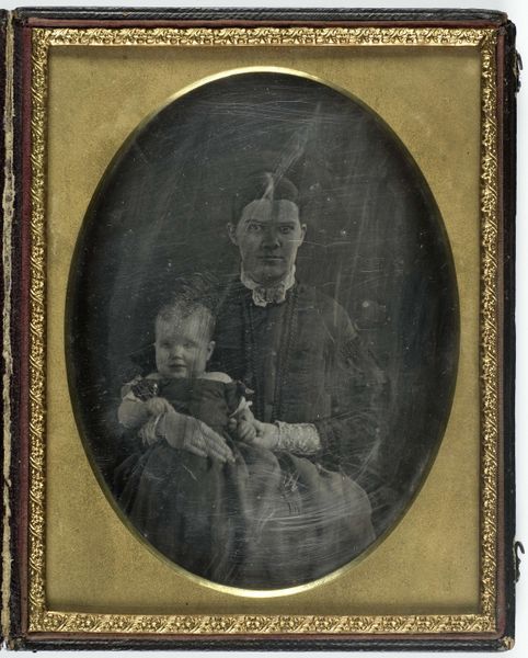 This small, cased photograph, "Untitled (Portrait of a Boy and Girl)," offers a glimpse into the rigid social structures of 19th-century America. Its anonymous creation speaks to the era's photographic practices, where the focus often lay on capturing an image rather than celebrating individual artistry. The children, stiffly posed, embody the period's emphasis on decorum and restraint. Note the details of their clothing: The boy’s formal jacket and the girl’s bonnet. These are markers of identity and social standing. The presence of an adult partially visible on the left, perhaps a caretaker, hints at the complex relationships of labor and dependency within middle-class households. There's an emotional tension in the children's unsmiling faces, inviting us to consider the loss of childhood innocence amidst societal expectations. The photograph serves as a poignant reflection on identity, class, and the performance of childhood within a specific historical context.