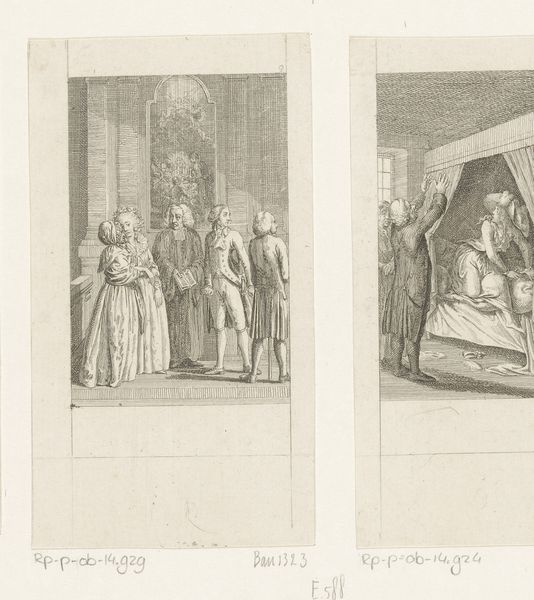 This etching by Daniel Nikolaus Chodowiecki captures a moment of high drama. Observe Camille's pose: she recoils, hand outstretched in a gesture of terror. This posture is not unique to Chodowiecki; we find echoes of it in ancient depictions of fear and vulnerability. Consider the image of a nymph startled by a satyr, or the Virgin Mary's reaction to the Annunciation. These share a common thread—a sudden confrontation with the unexpected. Such gestures recur throughout art history, reflecting universal human responses ingrained in our collective psyche. The maidservant's offering of medicine introduces a parallel symbol: the balm intended to heal. This act resonates with ancient rituals of care, a motif spanning centuries and cultures. The offering becomes a symbol of hope and recovery, contrasting Camille's immediate distress. These archetypes are not merely artistic conventions but enduring expressions of human experience, continually reshaped and reinterpreted through the ages.