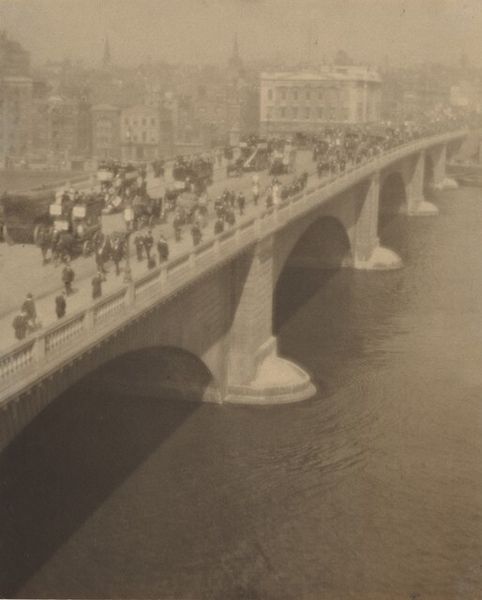 Römmler & Jonas created this image of London Bridge, using photography. The London Bridge in the image is a site of bustling activity, teeming with horse-drawn carriages and pedestrians, suggesting a moment of great social and economic exchange. The image likely dates to the late 19th century, a period when London was the epicenter of a vast empire. The architecture in the background, from grand buildings to industrial chimneys, shows the city’s blend of commerce and civic power. Photography at this time played an important role in shaping perceptions of urban life. This photograph aestheticizes the industrial revolution. Historians look at such images as documents, tracing social patterns and power structures through visual evidence. We research the economic forces driving London's growth and explore photography’s role in promoting the idea of progress. Through this approach, the photograph becomes more than just a picture, it is a window into the past.