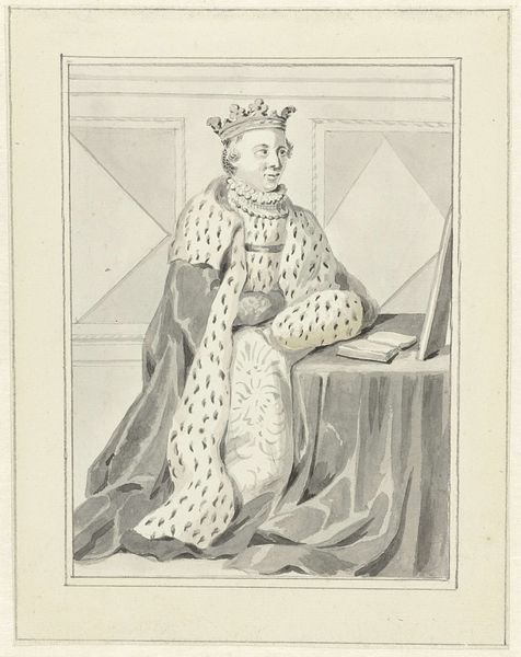 Jacopo Bernardi made this portrait bust of Lodewijk I van Orléans with graphite. The drawing is dominated by the bust itself, rendered with delicate and precise lines that capture the smooth texture of what appears to be marble or plaster. The subject, likely a royal figure given the crown, is presented in a formal, idealized manner. Bernardi’s use of line work and shading creates depth and volume, giving the bust a three-dimensional quality, despite the flatness of the paper. The composition is structured to draw the eye upwards, from the base of the bust to the crowned head, emphasizing the subject's noble status. However, the lightness of the graphite and the unfinished quality of the surrounding space destabilize the traditional sense of permanence often associated with portraiture, hinting at the transient nature of power and representation. This piece challenges fixed meanings and engages with new ways of thinking about representation.