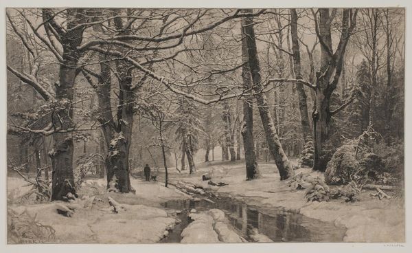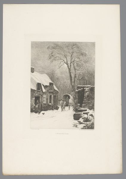 Editor: This photograph, "Snow (Winter)" by Adolfo Farsari, is so serene. I'm curious, what does it evoke for you? Curator: I see a constructed narrative, a picturesque Japan tailored for Western consumption. Farsari, an Italian businessman turned photographer, profited from orientalist desires. How does knowing this shift your reading of its serenity? Editor: It complicates it. The beauty is still there, but it's framed by commerce and cultural exchange, or perhaps exploitation? Curator: Exactly. The image becomes a site of power dynamics, reflecting the unequal relationship between the West and Japan during that period. Editor: I hadn't considered that. Thanks, I'll definitely look at these images with a different lens from now on. Curator: Glad I could help, it's always important to think critically about the context in which art is made and consumed.