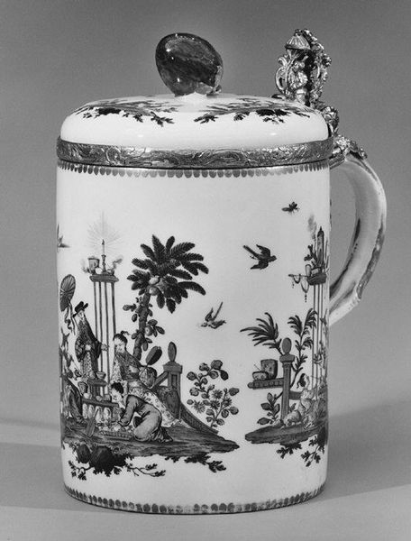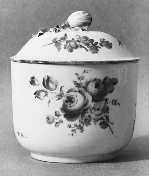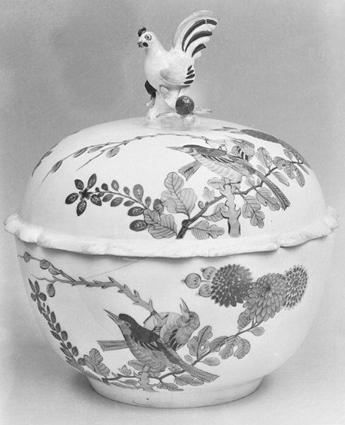 Editor: So, this is a porcelain tea caddy, dating from around 1755 to 1770, created by the Fürstenberg Porcelain Manufactory. It’s currently held at the Met. What strikes me is how delicate and ornate it is. What can you tell me about this piece? Curator: This caddy embodies the Rococo aesthetic, but let's dig deeper than just 'decorative art'. Consider tea's place in the 18th century: an imported luxury heavily intertwined with colonial exploitation and the British Empire's trade routes. These objects become silent witnesses to the violent histories of trade. The birds and flowers, what could they be referencing? Editor: I hadn't thought about that. Maybe the flowers represent exotic locations? Curator: Precisely. And birds? Often symbols of freedom and beauty, perhaps also reflecting the commodification of the natural world inherent in colonialism. The porcelain itself, a sought-after material, further reinforces the object's connection to wealth and global exchange, often violently enforced. It represents social stratification and power. Editor: So the caddy, beyond its aesthetic appeal, really embodies a whole complex network of trade and exploitation. It's quite a loaded object. Curator: Exactly! It challenges us to acknowledge the less visible, often uncomfortable narratives embedded within even the most seemingly harmless works of art. How do you think contemplating these objects can encourage difficult conversations? Editor: Understanding that even beautiful objects like this one can carry difficult histories is something that I hadn't previously considered, but that adds layers of meaning that would otherwise be invisible. Curator: That’s what makes engaging with art so compelling. Every object can reveal untold stories about power, privilege, and our shared past. Editor: Absolutely! It makes you rethink what art objects meant then and what they can mean today.