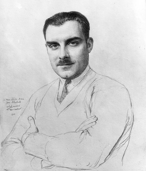 Editor: This is Boris Kustodiev's pencil drawing, "Portrait of I.I. Sadofev" from 1926. It feels incredibly direct, almost confrontational despite being a profile. The sharp lines and intense gaze seem to cut right through you. What do you make of this portrait? Curator: I see a study in the semiotics of the face, a landscape of early Soviet intellect molded by revolution and a society rebuilding itself. The intensity you feel could be seen as a representation of the inner world, a struggle for expression under a new ideology. What do you observe about the direction of his gaze? Editor: It's forward-looking, definitely, but there’s also a pensiveness, as though the sitter is considering something weighty. Maybe the artist is using the gaze to symbolize Sadofev's aspirations and intellectual energy in this revolutionary period? Curator: Precisely! And consider the absence of color, the stark monochrome. It reinforces the seriousness but also, in a symbolic sense, could point towards the austerity and limitations of the time, yet the line work creates a sense of depth, revealing a man of considerable substance. It begs the question, what symbolic power can we ascribe to the simple pencil? Editor: It’s interesting how a simple medium can carry so much cultural and emotional information. This makes me appreciate the intention and thoughtfulness in what seems at first like a quick sketch. Curator: Indeed, and recognizing these encoded gestures allows us to engage with the artwork, and, by extension, with the cultural memory that it preserves.