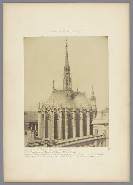 Editor: This gelatin-silver print, titled "Gezicht op de Sainte-Chapelle te Parijs" and attributed to Étienne Neurdein, presents a serene cityscape dating from around 1870 to 1900. What strikes me most is the almost ethereal quality of the light and how it captures the Gothic architecture. How do you interpret this work, considering the time it was made? Curator: It's a compelling image, isn’t it? Notice how Neurdein has chosen to represent Sainte-Chapelle. The basilica isn’t merely recorded; rather, it appears as a near-mirage rising above Paris. The choice of black and white imbues the scene with a sense of timelessness, allowing the chapel to represent not just itself but the enduring power of faith and monarchy—a loaded concept in post-revolution France. Doesn't the architectural style evoke an idealized medieval past? Editor: It does, almost like a romanticized vision of history. I’m thinking about the Gothic revival and how photography began shaping cultural memory. Curator: Precisely! The sharp focus on the building's facade, set against the soft sky, hints at more than what is visible, stirring something profound within the viewer. Sainte-Chapelle was, after all, commissioned by Louis IX to house sacred relics, a physical embodiment of divine right. And remember, photography itself was then a relatively new medium, invested with notions of truth and objectivity. Does this combination create tension, or harmony, do you think? Editor: That’s fascinating. I’d say it definitely complicates our reading. Thank you for shedding light on the cultural memory embedded in it. It makes me see beyond just the architectural beauty. Curator: And seeing beyond is where true appreciation begins! It is fascinating how artists from very different backgrounds converge when engaging symbols across the ages.