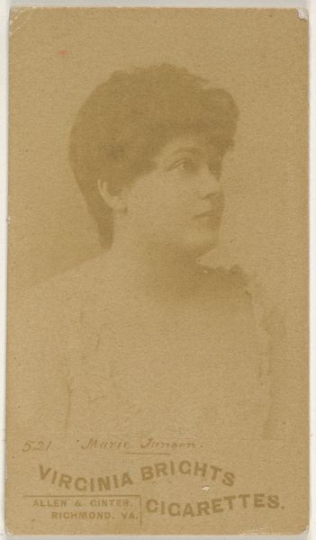 This is a promotional image of Mignon Villars, printed by Kinney Brothers Tobacco Company as part of the Actresses series. The late 19th century was an era of burgeoning consumer culture. This convergence of entertainment and advertising reflects the evolving role of women in the public eye, and also perhaps the increasing visibility and agency of actresses like Villars, who occupied a unique position in society. In these images, actresses were often styled in ways that accentuated their beauty and charm, adhering to conventional standards of femininity, while simultaneously carving out space for themselves in an emerging commercial landscape. These images blur the lines between performer, commodity, and consumer, inviting us to consider the complex negotiations of identity and representation that shaped the lives and careers of women in the late 19th century.