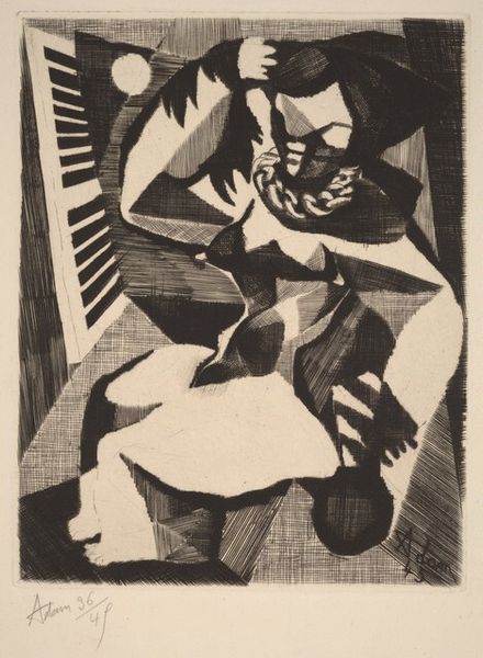 This untitled linocut by Carl Robert Holty uses dense blacks and pure whites in a dynamic pattern. It looks to me like a bather at the edge of the sea. The shapes are blocky, almost architectural, but they suggest a body in motion, a body being broken apart and reassembled. I love how the black ink isn’t perfect, the edges slightly crumbly, giving it a tactile quality. The surface almost looks like it could be velvet. Notice how the waves are rendered as simple zigzags, a shorthand that works perfectly. The bather is abstracted into geometric forms, like a cubist sculpture, but the feeling is still there, that human presence. Holty’s work often explores the intersection of abstraction and figuration, and you might see the influence of artists like Picasso or Braque here. But he brings his own unique sensibility to it, a kind of playful seriousness. It’s a reminder that art isn’t about answers, it’s about asking interesting questions.