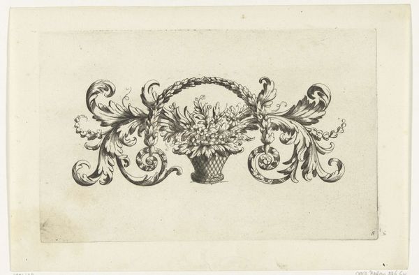 Curator: This piece, created sometime between 1654 and 1678, is titled "Cartouche met compartiment in de vorm van open monsterbek," by Jacob Lutma. It's a detailed work combining drawing, graphic art, printmaking techniques using ink and engraving. Editor: The grotesque imagery is immediately striking, almost unsettling. There’s this tension between the decorative and the monstrous—a really intriguing duality. Curator: Absolutely. Let’s delve into that duality. Lutma’s focus on the monster's mouth as the central element invites an analysis of the labor involved. Such engravings were often functional, used in architecture, furniture, or as design models. Consider the craftsman reproducing this – embracing the bizarre for practical means. Editor: Which speaks to the broader social context of the Baroque period. The cartouche was frequently used to frame text, proclamations, and emblems of power. By choosing a grotesque motif, does Lutma aim to subtly critique or subvert those structures of authority? And let’s not forget the obvious gender aspect: How would a woman artisan view these forms, laden with what are perceived male features and ideas? Curator: The question then is who consumed these images? The material reality— engravings reproduced en masse, reaching wider workshops than unique artwork. The penmanship and repetitive form invite comparisons to the decorative styles reproduced during colonialism and later, in some corporate logotypes even now. Editor: The tension also evokes discussions about class. Did the nobility genuinely appreciate the disturbing aesthetic, or was it a manufactured taste imposed upon craftspeople who may have had different perspectives, forcing artisans to recreate grotesque visions for their superiors, with obvious asymmetrical gender dominance implications too. Curator: That point challenges assumptions of 'high' and 'low' art – especially when viewing the handiwork invested in even 'minor' works intended for production or mere imitation. The labor behind these reproducible forms requires our respect. Editor: It urges us to examine who is rendered invisible within art narratives. This piece is less about monstrousness but also the act of its representation, what's been omitted in its historical presentation. A subtle, yet striking visual artifact. Curator: I agree, something crafted with care and meant to be replicated and remade, so it highlights materiality rather than transcendence.