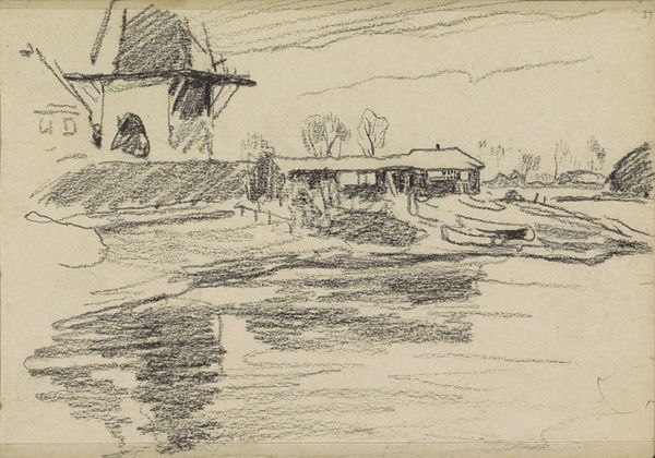 Alfred Sisley created this oil on canvas, titled 'The Loing at Moret' of modest dimensions, with a dominant scheme of browns and yellows, tempered by the cool blues of the water. The composition is structured by the strong horizontal line of the bridge juxtaposed with the vertical thrust of its supports. This framework creates a series of spatial compartments, each offering a unique perspective on the river and its activities. Sisley employs visible brushstrokes to construct the forms, giving the painting an almost palpable texture. The semiotic interplay of horizontal and vertical elements might evoke a sense of stability challenged by the transient nature of the scene. The visible brushwork disrupts a purely mimetic function of the painting. Sisley uses a formal vocabulary to hint at something beyond the immediate subject. The structural arrangement, though seemingly straightforward, opens up questions about our perception and engagement with the environment.