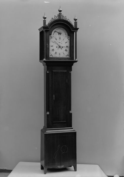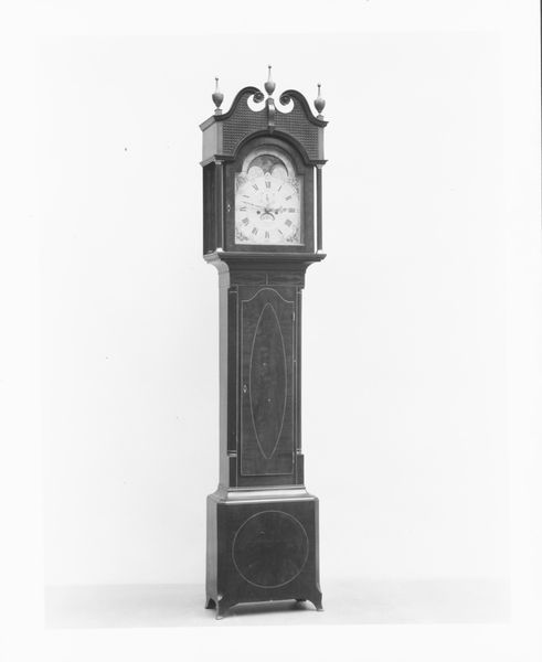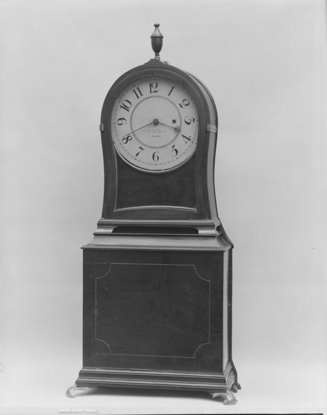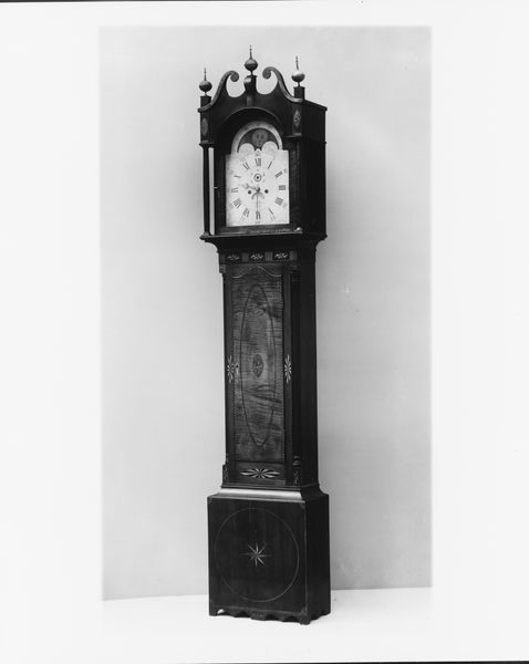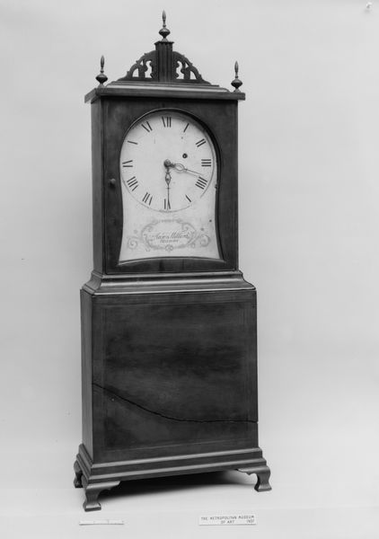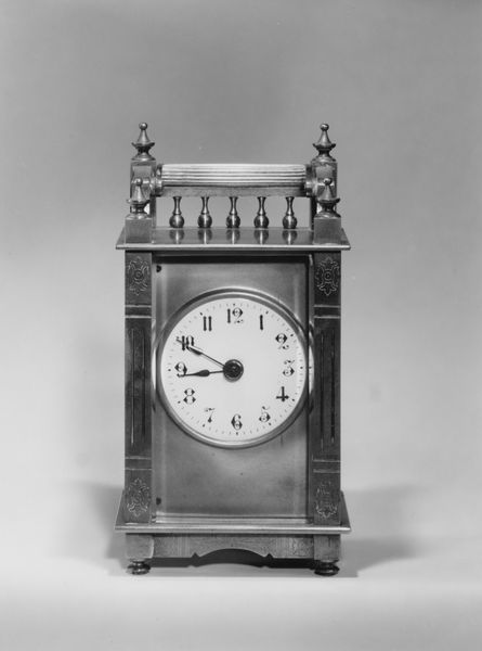 Editor: This is Daniel Quare’s Spring-Driven Clock from the late 17th or early 18th century. It's impressively decorated. What do you see when you look at this piece? Curator: It's not just a clock; it's a reliquary of time itself! Notice how the silver ornamentation speaks to a period obsessed with order. The very act of measuring time became a symbolic endeavor. Do you see any repetition of motifs or patterns? Editor: Now that you mention it, there's floral imagery repeated. Curator: Precisely! These motifs often represented prosperity and even eternal life. Time, then, wasn’t just about marking hours, but about humanity’s place in the cosmos, and the hope for continued existence. Editor: I hadn't considered it like that. It's a powerful symbol of hope. Curator: Indeed, objects like these tell us just as much about cultural memory as they do about horology.