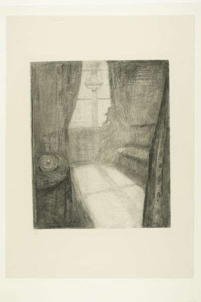 Lau Heidendael made this print, *Stilleven 4*, using etching – a process of drawing with acid on a metal plate, then inking and printing. It's all about the line, that’s where it starts. The texture is created by layering those lines, a whole mess of hatching that builds up these murky, dark shapes. Look at the lower left – how the lines are denser, thicker, almost like a shadow clinging to the surface. It gives everything this weighty, almost oppressive feel. But then there are these lighter areas, where the white paper shines through, and your eye can breathe a little. Heidendael's work reminds me of Giorgio Morandi, with his muted palette and exploration of simple forms, and the ongoing conversations artists have about the quiet, the overlooked, the beauty in the everyday. It's not about answers, it's about the questions, the looking, the feeling.