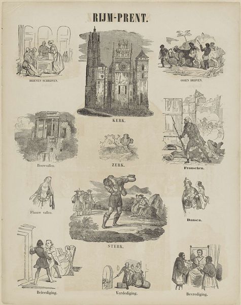 This print, "Allerlei," by Albertus Willem Sijthoff, presents us with a constellation of scenes, each laden with symbolic weight. Dominating the composition is the motif of the "Waarzeggen," or fortune-telling. The hand, offered and read, becomes a potent symbol here—an invitation to glimpse the uncertain future. This act of divination is ancient, surfacing in countless forms across cultures and eras. From the oracles of Delphi to the palm readers in bustling markets, the desire to penetrate the veil of tomorrow is a constant. The gesture of extending one's hand is particularly fascinating. In this context, it's not merely physical; it's a conduit for anxieties and hopes, a subconscious offering of oneself to fate. Much like the 'groeumarkt' or 'market scene' evokes our primal, communal desires for survival, social exchange, and economic destiny. Observe how these symbols, fragmented yet interconnected, speak to our collective memory. They echo through time, reappearing in different guises, bearing witness to humanity’s enduring quest for meaning.