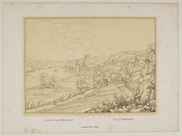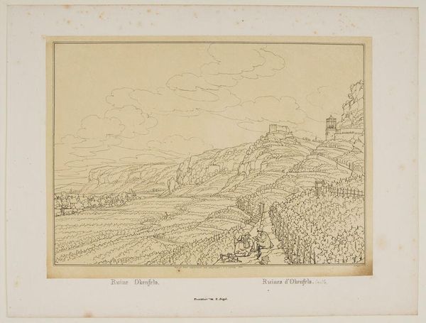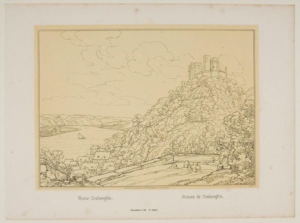 Editor: This is Johann Adolf Lasinsky's "The Rock of the Lorelei," a very linear drawing. What stands out to me is the detail in the rendering of the rock formations. How do you interpret this work, considering its material execution? Curator: The emphasis on line suggests engraving or etching. The printmaking process allows for mass production and wide distribution. Lasinsky's choice makes the romantic landscape accessible, almost like a commodity. How does the reproducibility influence its artistic value, do you think? Editor: That's interesting, I hadn't thought about the implications of the printing process! It makes me consider the accessibility of art in a new light. Curator: Indeed, considering its function and intended audience brings depth to understanding the artwork.