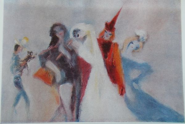 Editor: Here we have "Don’t Let Anyone Tell You" by Cathrine Edlinger-Kunze, an acrylic painting with a flurry of figuration that makes me think of Degas and Toulouse-Lautrec. I’m really drawn to the almost vulnerable body language in the figures; it’s a complex composition, wouldn’t you agree? What do you see in this piece? Curator: I see a powerful statement about societal expectations and the vulnerability of the female form, especially within performance contexts. Consider the legacy of the male gaze in art history and how it has historically framed dancers and performers. This painting subtly disrupts that power dynamic. The figures aren’t posed for the viewer's pleasure; instead, there is a sense of interiority, a shared moment of contemplation or perhaps even resistance. Editor: Resistance to what exactly? Do you mean the physical demands on ballerinas or something else? Curator: Precisely. Think about the gruelling training, the relentless pursuit of an idealised form. There's a tension here between the performative and the personal. Is it about the pressures to conform? To remain silent in the face of objectification? What are they guarding themselves against? Edlinger-Kunze could be alluding to issues prevalent now as ever regarding bodily autonomy and voice. The painting could speak to current intersectional discourse around consent, visibility, and agency. Editor: I never would have gotten all of that on my own, but now I can see the potential messages encoded. So how does the "Don't Let Anyone Tell You" title change the message further? Curator: I think it could suggest that these pressures and internal dialogue, particularly with the figures leaning in on each other, that support system against societal expectations are strong, despite potential barriers. Editor: Okay, I hadn't considered the figures supporting each other as much as all the melancholy in their facial expressions! Curator: Yes, art offers that multiplicity. Looking at their combined postures, Edlinger-Kunze prompts reflection upon a collectivity in performance. Editor: That makes me look at the work completely differently. Curator: It certainly does that. Art offers new perspectives, just like new conversations on what already exists!