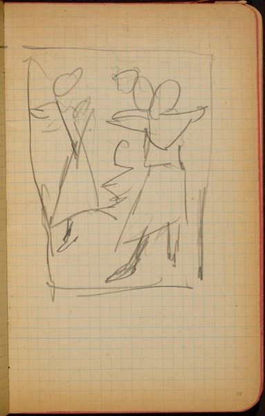 Editor: This is Max Beckmann's "Weibliche Bildnisstudie im Profil," or "Female Portrait Study, Profile," created between 1918 and 1919 using pencil on paper. It has an unfinished, almost skeletal quality, due to its minimalist form and lack of shading. How do you approach an artwork like this? What elements stand out to you? Curator: Initially, it's critical to acknowledge the constraints. The artist employs only line to generate form, resulting in emphasis of direction and angle, and therefore creating shapes within the shape of a face. The planes described appear rather architectural and cubist, so, even though this is Expressionism, elements of Modernism appear dominant here. Note the tension created in the relationship between contour and content. What impact do you think the linear qualities have on our perception? Editor: I think it contributes to the drawing's sense of incompleteness and the feeling that it’s a work in progress. The angular lines are stark, giving it that skeletal feel, as the form and shapes lack traditional definition. But beyond the angularity, does the choice of perspective also enhance the expressive nature of this piece? Curator: It appears to flatten the picture plane, collapsing three-dimensional space into a surface of related linear units. The artist appears to be investigating the very structures of portraiture, peeling it back, one might say, and showing us its foundations. Consider the visual weight. What sections command the most attention and how? Editor: The face obviously grabs most of the focus, though the cap shape definitely catches my eye. With very little hatching, the linear network making up the image’s volumes is remarkably even in its distribution. It keeps drawing the eye over all portions of the work, rather than creating a traditional focal point. I am struck how this technique results in visual harmony out of this very reduced and fragmented study. Curator: Indeed. Focusing on this artwork, particularly on Beckmann's formal techniques, allows one to fully appreciate how the artist utilizes those qualities in the service of larger expressionistic tendencies. Editor: It's been enlightening to look at Beckmann's formal decisions and understand how they contribute to the emotional and expressive impact of this drawing. Thank you.
