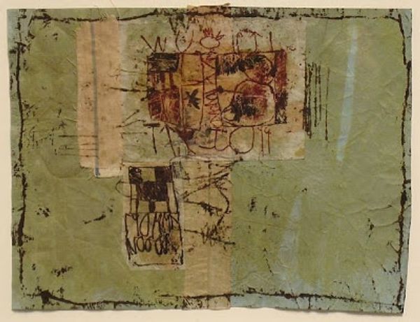 Curator: This is Colin Self’s "Study for Rose Period No. 3," currently held in the Tate Collections. Editor: It feels like a memory dissolving, those washed-out rose hues clinging to the edges of something forgotten. Curator: The watercolor technique lends itself to that interpretation. The central image is obscured, though a figure can be discerned. Editor: Absolutely, it's as if he’s hinting at a story, but the specifics are deliberately veiled, like trying to recall a dream. The raw edges only add to the feeling of incompleteness. Curator: The interplay between the blurred background and the obscured image creates a sense of tension. Editor: Yes, it's strangely beautiful, this decay. I feel a pang of melancholy. Curator: Indeed, Self's process here allows the viewer to meditate on the ethereal quality of existence. Editor: A poignant reflection, wouldn't you agree?