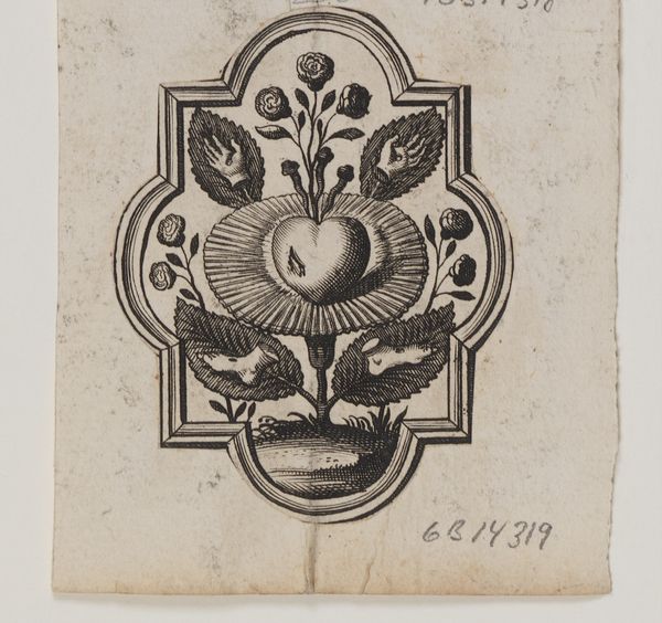 Editor: This is an engraving called "Emblem med et gennemboret hjerte og passionsredskaberne," placing it roughly between 1609 and 1672. The artwork presents a pierced heart surrounded by instruments of the Passion. The cross-hatching feels very dense. What details strike you, given the stark visual language employed? Curator: The composition immediately draws the eye to the centrally located heart, functioning as the symbolic nucleus. Observe how the radiating lines emanating from behind the heart serve not merely as a decorative flourish but structure our attention, emphasizing the centrality and the vulnerability. Editor: Yes, I see it! So, these elements contribute to an overall theme or message? Curator: Indeed. Consider the iconographic language here. We can investigate these instruments: the nails, the crown of thorns, the skull… Each object contributes to the construction of meaning. Notice too how the lines vary in weight. What does that tell you about the engraver's intent? Editor: Maybe to add depth? Curator: Precisely. The strategic modulation of line weight creates visual depth, enhancing the tactile quality and lending a sense of gravitas to the allegory of sacrifice and redemption. I find it fascinating how the symbolic language of the piece blends form and message, guiding interpretation through pure visual construction. Editor: That's a useful insight! I think I'll pay closer attention to these deliberate choices made with lines in future. Curator: Examining art through this lens, focusing on elements like composition and technique, offers an approach that emphasizes close looking. It can illuminate how artists use visual structures to communicate profound ideas.