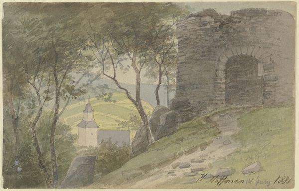 Georg Melchior Kraus made this watercolor painting of the Liebenstein ruins, with Liebenstein castle in Germany as its subject. The work reflects a growing fascination with ruins, that became popular in the late 18th century. This was the age of the enlightenment, where ideas about reason and order were prominent. But this period also saw an increased interest in the past, and in the relics of earlier cultures. Ruins like Liebenstein castle offered a glimpse into the medieval era. These ruins were reminders of human history, inviting reflection on the rise and fall of civilizations. They are visual symbols of time passing. Paintings like this played a role in shaping a sense of national identity. They encouraged pride in local landscapes and history, and they preserved memories of a historic landmark. The artist’s choice of this subject suggests an interest in local history, and in the aesthetic qualities of decay and ruin. By studying historical documents, and cultural contexts, we can better understand the cultural significance of artworks like this one.